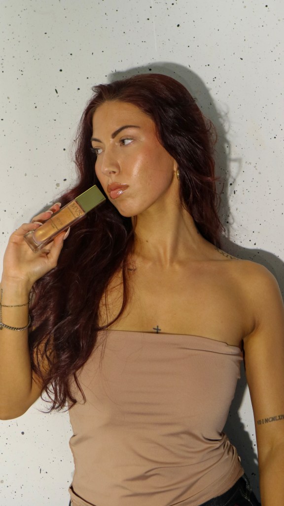 This lightweight serum-oil mist melts into the skin, delivering deep hydration, sun protection, and a luminous, buildable glow that feels like silk. Infused with papaya extract, botanical waters, and a refined shimmer, it soothes & nourishes. Fresh. Weightless. Sun-kissed.